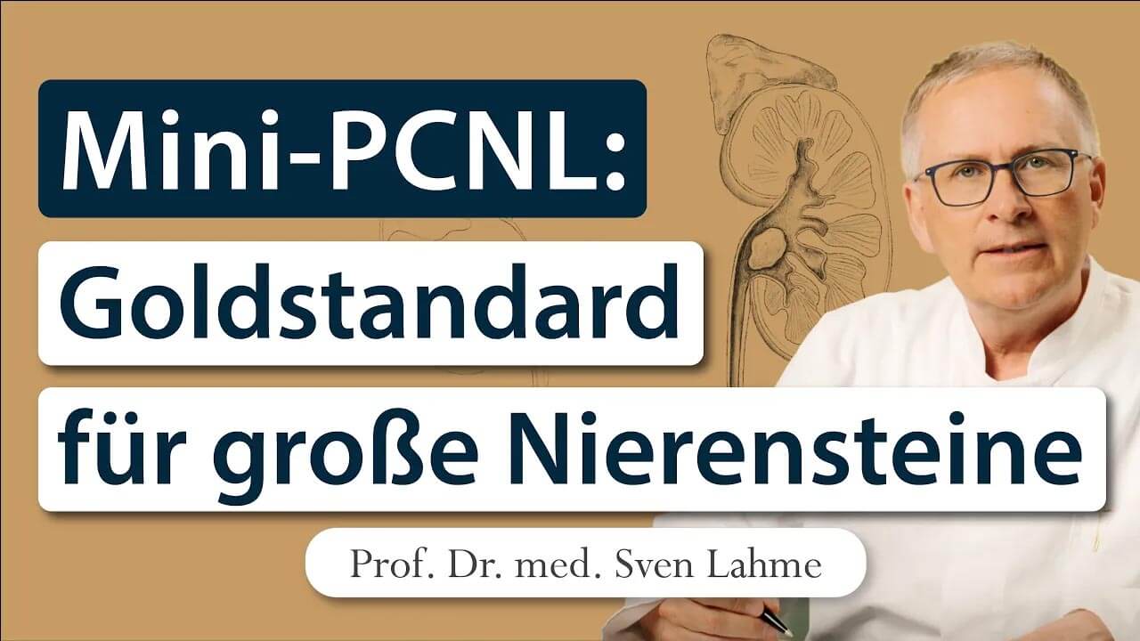 In diesem Video erklärt Prof. Sven Lahme, warum die von ihm entwickelte Mini-PCNL bei größeren Steinen heute als Operationsverfahren der Wahl gilt. Im Gegensatz zur klassischen PCNL kommen bei der Mini-PCNL die miniaturisierten Instrumente zum Einsatz.